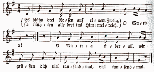 Es blühen drei Rosen auf einem Zweig, o Maria