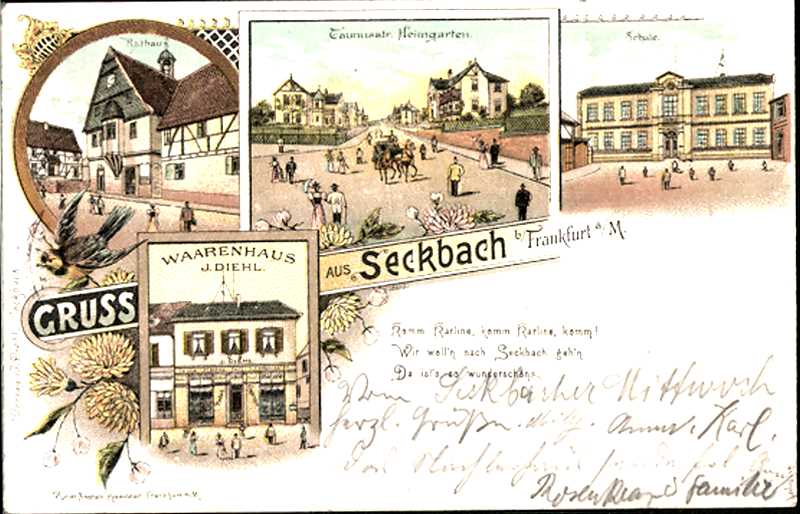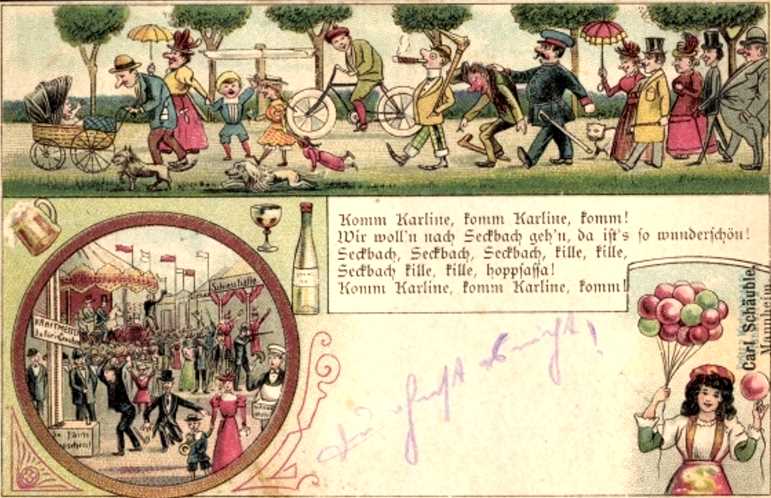 Als Vorbild diente der „Hamburger Juxmarsch“ von Emil Ascher (1888) mit textiertem Trio „Komm Karline komm wir gehen nach Hamburg“. Dieser „Juxmarsch“ ist vermutlich der erste richtige „Gassenhauer“. Der Frankfurter Komiker Adolf Spahn schrieb ein Jahr später diesen „Juxmarsch“ zu einem Couplet mit 5 Strophen um: „Komm Karline komm wir wollen nach Seckbach gehn“. Zahlreiche Liedpostkarten aus dieser Zeit zeugen von der großen Popularität dieser Seckbacher Version. Es existieren 1897 bereits Postkarten mit dem Seckbach-Liedtext und „Kille Kille“.