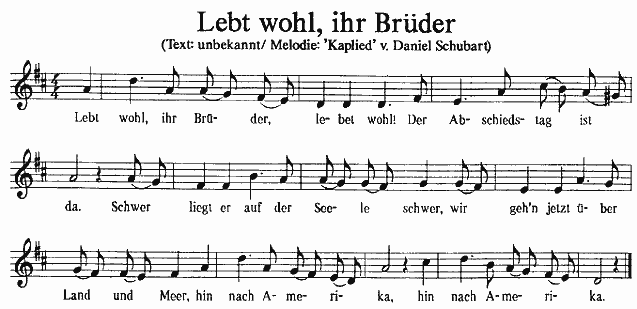Quelle: Artikel von Dr. Fritz Heeger, „Lebt wohl, ihr Brüder! Ein pfälzisches Auswandererlied und seine Herkunft“. aus: Die Pfalz am Rhein vom 15.8.1931.