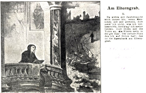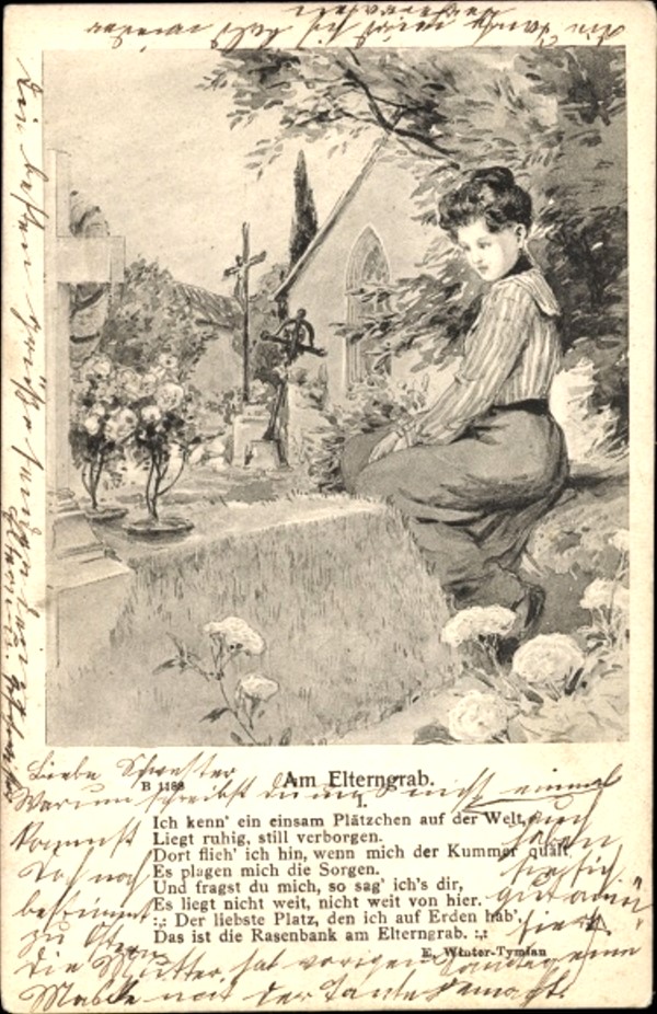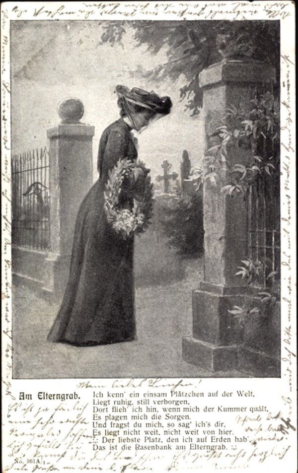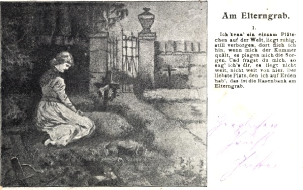 Ich kenn ein einsam Plätzchen auf der Welt, liegt ruhig still verborgen… Der schönste Platz, den ich auf Erden hab’, das ist die #Rasenbank am Elterngrab; DVA = KiV. Verf. unbekannt. “Sänger” und Komp.: Karl Ottemar ( -1934; kaiserl. russ. Hofsänger) und Emil Winter, ed. 1902.
